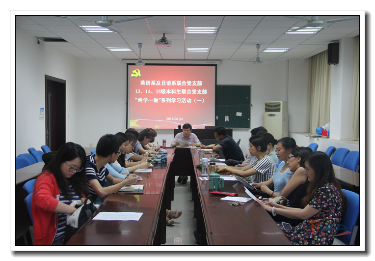 同日,英语系及日语系联合党支部与13、14、15级本科生联合党支部联合开展“两学一做”专题学习。教工支部书记姜礼福和学生党员分段领读了党章,随后姜礼福向全体党员讲解了党章各部分重点。院长范祥涛作为支部党员参加学习讨论,他提出了“当下为什么要开展‘两学一做’活动,其意义何在”这一问题,引起大家积极讨论,范祥涛强调,能不能有效学习党章、遵守党章、贯彻党章、维护党章,关系到增强党的创造力、凝聚力、战斗力,关系到党的事业兴衰成败和党的生死存亡,师生党员要深刻认识“两学一做”重要意义。师生党员还围绕“在教学过程中,如何把有意义的事情做得有意思?”、“如何提高教学质量?”、“对外语专业素质能力提升工程发展的建议?”等问题展开讨论,努力在“两学一做”中抓住“做”这一关键。