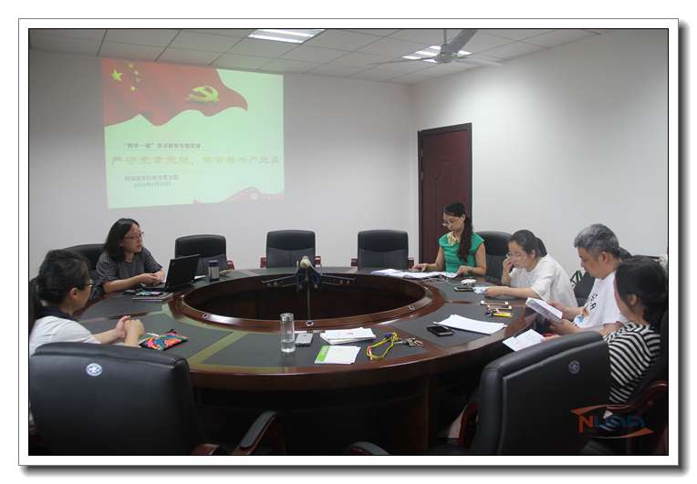 研究生公共外语教学部党支部也于同一时间开展了支部会议。会上,支部书记鲍德旺与支部党员一起重温入党誓词,学习了党章和两部党内法规的相关内容并进行了深入研讨。副院长徐以中作为支部党员与大家一起学习讨论,分享了心得。通过学习讨论,大家深切体会到学习党章党规的重要性与必要性,认识到做一名合格党员就是要把党章党规记心间,做到以党章党规为镜,深学细照笃行。结合工作实际,教工党员一致认为在当前形势下,只有立足岗位踏实工作,在抓好教学质量的同时提高学术科研能力,为我校“双一流”建设以及学院学科建设贡献力量才是真正把“两学一做”落在实处。
