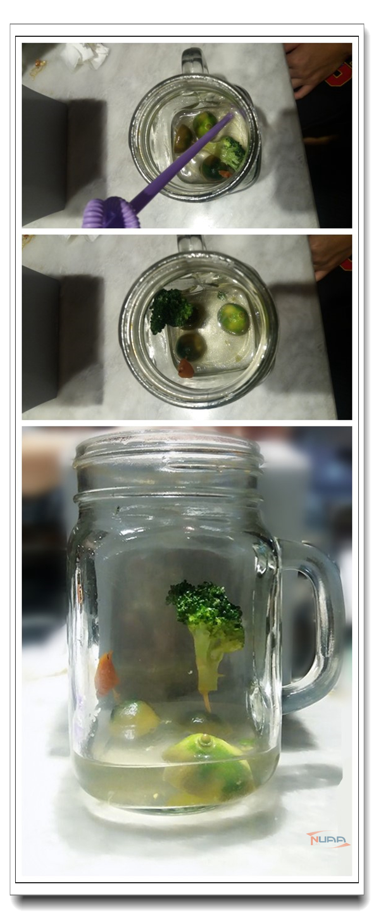 “我们的想法最初来自《秒速五厘米》这部电影,其中有把薯条摆成恐龙的片段,所以我们也有了这个想法,”队员袁江雯说“在餐厅里把剩菜摆造型,还有的造型比较复杂,我们必须用到手,毕竟有一部分剩菜是别人吃剩下的,我们还是需要有一定的勇气的,最终我们都克服了羞怯。”