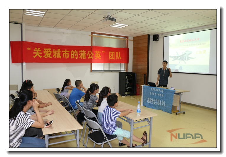 7月6日,来自南京航空航天大学电子信息工程学院的关爱城市蒲公英团队,带着飞机模型和无人机,走进南京市清凉山社区,为社区里的留守儿童“城市蒲公英”们带来了一场丰富多彩的启航课,引领孩子们走进了航空航天的浩瀚世界。 ![]() 启航课上,首先是航天航空知识科普小课堂环节,队员赵晗汀同学通过播放空战视频、一分钟航概手绘动画,让孩子们对航空航天的基础知识和发展史有了生动形象的了解,提问环节表现出色的孩子还获得了飞机模型作为奖励。 ![]() “希望通过暑期社会实践的平台,利用有限的时间陪伴这群孩子。其实,在他们拓展视野,学到知识的同时,也锻炼了我们自身的实践能力,承担起了社会责任。”团队队长张浩说道。 ![]() 在用PPT展示了纸飞机的基本折法之后,队员们辅助孩子们完成折叠纸飞机,并就成果进行点评、改进。队员们又向孩子们介绍了无动力泡沫飞机,耐心地讲解了泡沫模型与纸飞机之间的优劣和制作上的区别,并确保每个孩子都能成功地组装、试飞一架无动力泡沫飞机模型。 ![]() “今天真的很开心,特别是做航模,以前从来没做过,动手的感觉很快乐。” 来参加启航课的沈彦君小朋友笑着说。 ![]() 在启航课的最后,队员王科棠在户外展示了该如何操作一架小型无人机,并指导小朋友操作无人机,给他们自己动手的机会,体验飞行的乐趣。 ![]() 队员曹阳同学说:“作为南航人,我们有航空报国的情怀。我们也希望能把这种热情和自豪感传递给小朋友们,让他们了解航空航天的知识,在他们的心中埋下一颗种子,争取将来为我们航天大国做出更多贡献。” ![]() 本次关爱城市蒲公英活动从7月4日起,为期一周。七天里,安排了各不相同的日程。有玩棋类益智游戏、自己动手制作蛋糕、亲子互动等等活动,一个会武术的队员在活动中还教授了孩子们一些基础武术动作,他们学得有模有样,乐在其中。 ![]() 活动第二天,“关爱城市蒲公英”团队有幸邀请到了来自南京大学哲学系的研究生们,一起带领“蒲公英们”举行了一场小型辩论赛。辩论赛的主题是“论电脑游戏的利与弊”,以切合孩子们当前面临的现象为宗旨。赛前,南航与南大的同学们积极运用各种方式引导小朋友们思考科技与传统的优劣。两组孩子都参与到了热烈讨论中。 ![]() “关爱城市蒲公英团队”已经坚持走过了五年,“我们每年都会丰富自己的活动,希望给孩子们更加丰富的体验,让他们快乐学习。”队长张浩说。 ![]() |