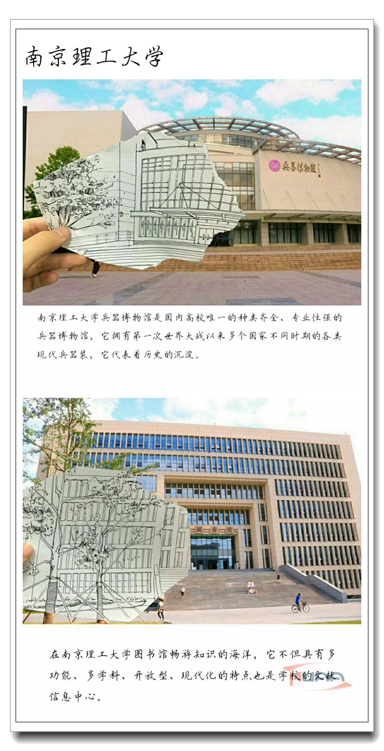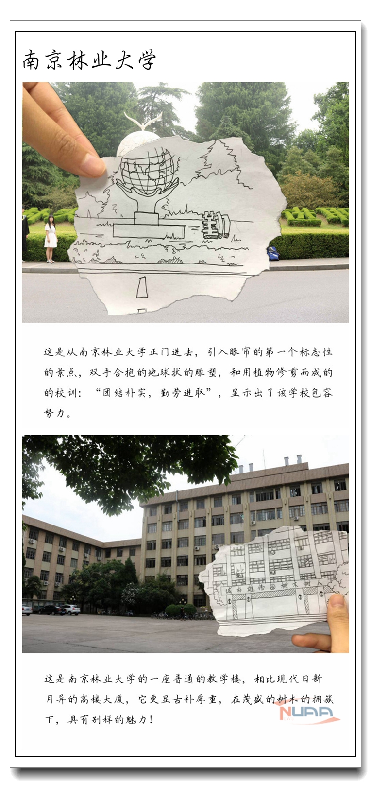 南大的杜厦图书馆、南航的大飞机、南理的兵器博物馆、南师的亭台楼阁、南林的老教学楼……这些建筑不仅仅是学生们学习生活的地方,更承载了高校的历史和文化。近日,南京航空航天大学艺术学院社会实践团队制作了一套插画和相片结合的高校宣传照,用铅笔画和相片结合的方式,生动地阐述了各大高校独有的建筑之美。 ![]() ![]() “南京有大大小小59所高校,每一所都会用校园里的建筑来彰显其文化精神。 如何使人们关注到建筑物的每一个细节,怎样吸引人们去感受建筑的神韵是我们的初衷”南京航空航天大学戏剧影视美术设计大二学生吴姚这样说道。 ![]() ![]() 团队选择了南京的11所高校的代表性建筑景点,例如造型独特的南大杜厦图书馆,南航毕业照必入镜的退役直升机,国内唯一的高校兵器博物馆等等。这些标志性建筑大都已成为高校的名片,吸引新生入学、承载毕业生回忆、传承校园文化。 ![]() ![]() 吴姚告诉记者,这种铅笔VS镜头的表现手法参考了比利时漫画家Ben Heine的系列作品,铅笔勾勒的二维线条与外面彩色的三维世界融合在一起,突破维度界线,趣味十足。“我们期待的受众对象是刚刚高中毕业,将要走进大学的同学们。希望他们可以从我们的作品开始,提前了解他们即将身处四年的大学。” ![]() ![]() |
