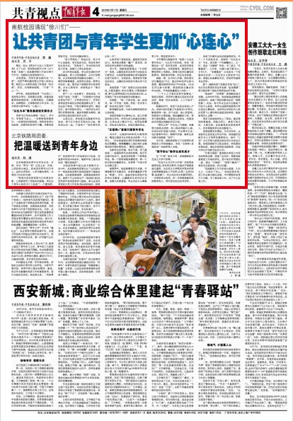 编者按:7月17日,《中国青年报》“共青视点”版头条以《南航校园涌现“徐川们”——让共青团与青年学生更加“心连心”》为题,由典型人物徐川引出,讲述我校共青团始终“不忘初心”服务学生成长成才的经验做法,在全国共青团战线中形成了强烈反响。 作为共青团中央机关报,《中国青年报》“共青视点”版主要报道全国各地各级团组织具有创新意义的新工作、新思路、新案例。 报道全文如下: ![]() 南航校园涌现“徐川们”—— 让共青团与青年学生更加“心连心” 中国青年报·中青在线记者 李超 通讯员 万千 最近,自从《我为什么加入中国共产党》火了之后,南京航空航天大学(以下简称“南航”)思政教师徐川开始忙得不可开交。他曾担任校团委副书记。 在校园里,同学们亲切地叫他“川哥”。他把严肃话题写得让年轻人纷纷点赞,能把让人头疼的思政工作变成“抢手课”。其实,在南航校园里,“川哥”不止一个。 多年来,该校团委始终“不忘初心”,坚持受众导向,坚持源头思维,实施思政教育供给侧改革,以需求驱动、兴趣驱动、品牌驱动、主体驱动的工作方法,让共青团与青年学生“心连心”。 “以生为本”激发基层团支部活力 团委书记侍旭也曾被“伤过”。2013年,学校团代会上,一切都按照流程进行,一位领导讲话刚结束,突然有位学生站起来,说领导的讲话听不懂。尽管现场很快平息,但对侍旭触动很大。 “孩子有想法。”侍旭反思,孩子为什么站起来,有无改进方法,有没有更好的处理方式。“形势变了,作为学校共青团工作者,却跟不上学生的改变”。 2014年南京高温,学生对空调的呼声越来越高,网上讨论很激烈,从而引发舆情。正当学校犯愁寻找解决方案时,一个辅导员拿着铺盖,来到学生宿舍,跟学生吃住在一起。最后这个班级的学生没有闹事。大伙儿很惊讶,没想到这个“笨方法”管用。 两个一正一反的例子,侍旭发现,作为团干部的“恐慌”,“互联网时代的政治更加开明了,大学更加自由了,同学们获取信息和表达诉求的渠道都太多了,要适应这个转变,不能凡事照本宣科,被动应对。做不到贴近学生,一味把学生当作我们的管理对象,就会背离群众路线,就会把学生推向我们的对立面”。 从那以后,学校提出加强教师作风改变,团干们不能天天待在办公室,要和学生在一起。于是有了“我和青年学生的一天”。 让很多团干苦恼的是,基层团支部没活力,很多地方都是“僵尸”团支部,团支部在学生群体中没有威望。 2011年,南航校团委提出“午后阳光”构想,以微型系列化的学习交流会为主要形式,由校团委直接举办面向基层学生团干的学习、交流活动。很多团支书参加活动后,也模仿在本组织中举办学习交流会。 该校团委“下放”校园文化活动招标权,只要创意好,学生们喜欢,不管是谁申请,都可以获得校园文化活动的承办权,从而调动了学生的积极性和创新意识。 在南航,“每一个团支部,每一位团员,每一天节省一角钱,资助一名失学儿童”的活动已坚持了20年,影响辐射全国,已成为南航团组织的公益标签。 该校团委副书记管祎认为,团工作要坚持受众导向,把学生的主体地位发挥出来,让学生进入舞台中央,老师走到幕后,把机会让给学生,把成长留给学生。 “互联网+”思维引领青年学生 2012年,从海拔5400米的当雄到南京,嘎玛白姆成为从村里走出的第一个大学生。“站台的地砖比我们村里最有钱家的还要耀眼,熙熙攘攘的人流比我们全镇集会的时候还要热闹。”嘎玛白姆感叹。 全新的生活环境、语言不通、学习基础差……她遇到前所未有的困难。每天早出晚归的学习,她成为学校第一个获得奖学金、第一个获得省级竞赛奖项、第一个担任班长的藏族学生,还获得“中国大学生自强之星”。 连续两年,她选择暑假回乡支教,开展格桑花开支教项目,给更多藏族孩子带去“希望”。今年,她报名参加西部计划研究生支教团,以藏族学生身份回乡支教。她最大的希望是,毕业后回乡从事教育工作,帮助更多孩子。 今年嘎玛白姆被评为“校园十大杰出青年学生”。与以往不同的是,告别“成绩决定一切”的评优评奖,这次把评奖权交给全校师生。评选很简单,参选学生只需将资料上传网站,获得10位师生撰写的推荐词,便获参评资格,师生实名投票。 短短一周,近1000人申报,网站累计访问量超过110万,超过6000名师生参与推荐,撰写推荐和评论17753多条,10122名师生参与投票,浏览阅读总量达到941669次,平均阅读量超过1100次…… “一个人人可登台的青年故事会。”借助互联网,用同学们喜闻乐见的形式来动员,营造“处处有典型、人人可成才”的氛围。 新媒体时代,有线下活动也有线上产品。该校OMG创意工作室能在1分钟内,解读两学一做、四个全面、核心价值观、团委是什么等话题。轻松幽默的口吻,简单可爱的漫画,浅显直白的语言,把复杂的东西通过有趣的形式介绍。 “青年之声”平台也人气满满,有教授大咖指点迷津,有心理老师敲开心扉,还有伙伴们的倾力相助,作为青年之友,他们答青年所问,解青年所惑,被学生亲切称为南航版“知乎”。 近年来,南航团委致力于互联网和思想政治工作深度融合,实现“互联网+思想政治”的独特育人功能。 “坚守初心”助学生成长成才 在“川哥”成名之前,该校就掀起马克思主义学习热潮。 “社会主义五百年