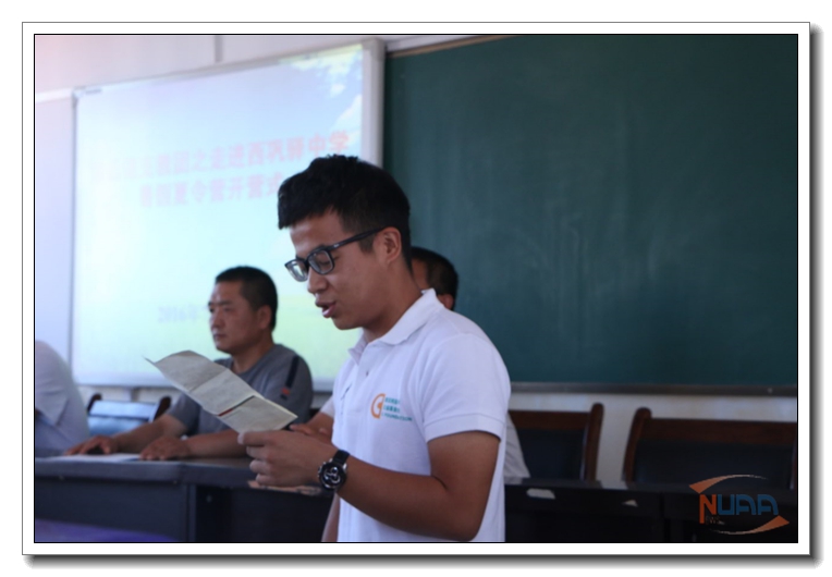 7月13——24日,南京航空航天大学航天学院的望远镜支教团将在西巩驿中学共进行为期十二天的暑期“夏令营”形式的支教、实践活动。西巩驿中学校领导积极与支教团合作,副校长夏军林热情接待了团队,并为团队成员安排住处与办公区域。 ![]() 7月15日早晨八点,支教团于多媒体实验教室举办了开营仪式。 参加仪式的分别有西巩驿中学校领导:副校长夏军林、政教主任于君袆、教导主任冯学勇、团委书记马旭东,两个学校的志愿者们以及初一、初二年纪的学生们。 ![]() 首先由夏副校长致辞,热烈欢迎与感谢来自西巩驿中学的志愿者们,并表示尽全力配合学生们的志愿活动。他在讲话中提到:“我校也很高兴有这样的一次机会,拓展同学们的视野,挖掘他们的兴趣爱好。” ![]() 其次是支教团学生代表发言,望远镜支教团罗润彬同学代表团体成员表达了对校方所做支持工作的感谢,并简要介绍了支教团来自不同高校的优秀志愿者及他们的精心准备,最后对校方和同学们做出承诺: 用支教团队员们有限的专业知识和无限的热情为西巩驿中学的孩子们带来一次难忘充实夏令营经历。 ![]() 最后是捐书仪式,南京航空航天大学望远镜支教团的志愿者们为西巩驿中学共捐赠150余册图书和部分体育、美术、书法用品。 ![]() 仪式结束后,开始了第一堂课:罗润彬同学和郑玉心同学通过带领孩子们的一起做游戏、让孩子们展示才艺,给孩子们送小礼物……两位小班主任慢慢拉近了与孩子们的距离,孩子们越来越踊跃、由一开始的拘束不自在变得活泼开朗。 ![]() 良好的开头是成功的一半,孩子们的积极配合反应让志愿者们心中的一块大石头落地,大家对未来的支教生活充满期待。 |