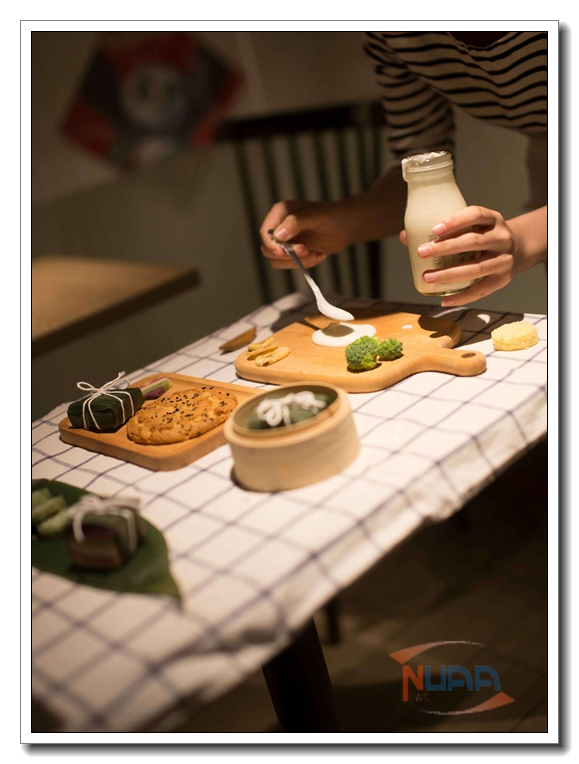 琳琅满目的糕点可谓是南京一道亮丽的风景线,但由于传统糕点比较注重口味而忽视了外形包装和用餐环境,很难吸引年轻人的目光。南京航空航天大学的四位女生就趁着暑假,用自己的创意让传统糕点实现了“华丽变身”,每一道都精致诱人得让人不忍下口。 ![]() 糕点包裹上鲜嫩的粽叶,再用细麻绳系上一个小结,侧面还能看到糕点五色的截面,配上精致的容器、简约大方的桌布和同色系的背景,这道“粽叶森林”一下让本来朴实无华的千层糕变得“高大上”起来。 ![]() ![]() 据团队成员介绍,设计这样一道作品不仅要考虑色调是否和谐,更要注意到口感风味上的搭配。南京的传统糕点口味较甜,口感大多软糯,再搭配上相应的西点,就能品尝到更丰富的口感。团队成员特别中意的就有这道“桂花抹茶千层糕”,微苦且口感独特的抹茶千层配合香甜软糯的桂花糕,清新的绿与白配色也十分适合夏天,这样的一品不仅满足了味蕾,更给人带来视觉上的享受。 ![]() 团队的四人来自同一个宿舍,大家常常一起讨论搭配的方案,自己购买食材和餐具,DIY完成后再由学过摄影的侯慧慧负责拍摄。她表示:“不仅灯光很重要,食物的摆放、餐具之间的配合、色调上的统一等等,都是拍摄中所不能忽视的问题。”像“粽叶森林”,由于粽叶比较翠绿,配上奶白色的桌布很清爽,我们就把背景放上了一些西兰花、荔枝,容器也选择了颜色较淡的小蒸笼。 ![]() 拍摄结束后这些糕点也丝毫没有浪费,团队成员把它们全部品尝过后一位成员表示:“本来就是用心搭配出的糕点,味道特别棒。又是品尝自己的劳动成果,就更加开心了!希望我们的作品能吸引到更多人来关注南京的传统美食。” ![]()