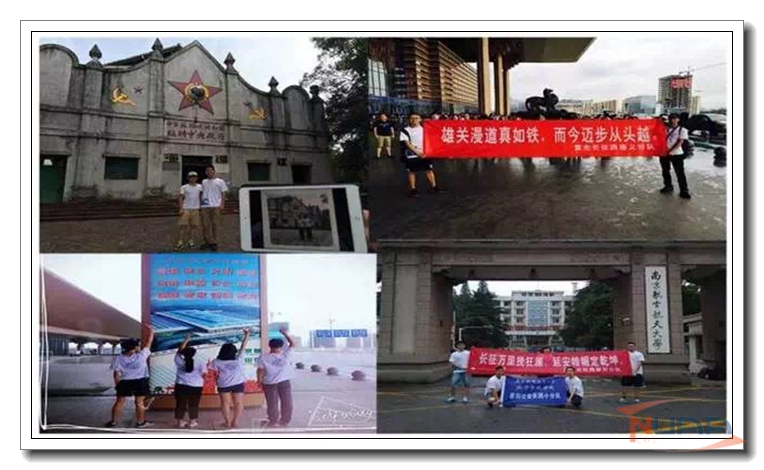 ![]() 兴宁公益流动图书馆 “长征记忆”我寻访 航空宇航学院“重走长征路·长征情结”本科生党员实践团队利用暑期的12个日夜进行了“画说长征”白体恤集字、 “用脚步丈量山河”徒步长征、“红色记忆”寻访老兵、“忆苦思甜”新旧照片对比等活动。队员们集中参观了红井、二苏大等革命遗址,了解红色政权历史情况和真实细节,步行7天从重庆到达遵义,并与来自各地的企业、大学生群体、基层村委会等团体围绕“两学一做”学习教育进行了交流。 人文与社会科学学院“我的长征路”团队共利用30余天时间采访了来自17个行业的40名优秀共产党员,探寻他们对长征精神的解读。鼓励大学生用自己的行动传承新时代的长征精神。