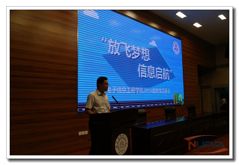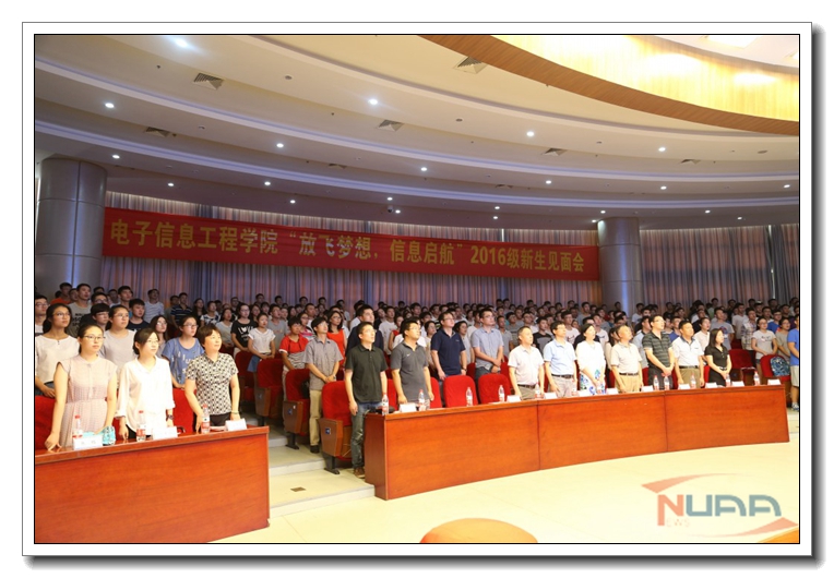 9月2日下午三点,电子信息工程学院“放飞梦想,信息起航”2016级新生见面会在一号楼报告厅顺利举行。出席此次新生见面会的有学院党委书记冯绍红、学院常务副院长周建江、副院长张弓、赵永久,学院党委副书记王伟华,各系主任、2016级各班的班主任、本科生和研究生教务员、教学秘书、全体辅导员、和全体2016级本科生新生和研究生新生。本次新生见面会由学院党委副书记王伟华主持。