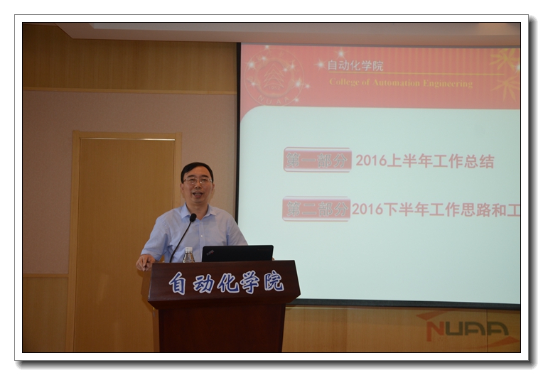 ![]() 9月8日,自动化学院新学期教职工大会在将军路校区自动化学院报告厅举行。本次会议主要有三部分内容:一是传达校第十五届党委第十七次全委(扩大)会议精神;二是院长作工作报告;三是进行党内“七一”表彰颁奖。学院全体教职工参加会议,会议由院党委书记刘建成同志主持。 首先,刘建成同志传达了中共南航第十五届委员会第十七次全委(扩大)会议精神。本次会议于8月30-31日召开,校长聂宏同志作了工作报告,同时副校长宣益民、许希武、黄志球同志分别对学科建设工作、科技工作、人事工作作了专题报告。大会回顾了学校上半年的成绩、对下半年的工作进行部署,剖析了学校的现实状况以及存在的问题和不足,学校将继续以“两学一做”学习教育为契机,以“双一流”建设为目标,紧密围绕年度工作重点,深入推进学校综合改革。刘建成书记号召全院上下持续深入贯彻“三为本,三促进”的办学理念,紧随院校深入改革的脚步,不忘南航初心,弘扬南航精神,全力推进“双一流”建设,正如校党委书记郑永安所言“如何正确理解和贯彻落实习近平总书记‘七一’重要讲话精神,并以此指导自身的建设与发展?最关键的是不忘南航的“初心”,真正干好我们南航自己的事。” 接着,院长姜斌同志代表学院做《自动化学院2016年上半年工作报告和2016年下半年工作部署》,报告中重点对学院的党建、教学、科研、师资、学科建设、人才培养、学生工作等方面进行全面总结和回顾。学院围绕中心工作,在学生培养、科研工作建设、学院文化建设等方面取得了新的突破和发展,特别突出的是,今年我院新增一名“万人计划”中青年科技领军人物,新增1名全国优秀科技工作者,新增2名“国家优秀青年科学基金”获得者,新增2名“江苏省杰出青年基金”获得者,获批1个工信部首批国防特色学科等。姜院长要求全体教师要以努力完成我院目标管理工作为要求,以“十三五”规划和深化校内综合改革为契机,乘势而上,坚定信心,科学发展,进一步增强我院的办学活力、干事动力和工作合力,全面推进学院各项工作再上新台阶。 ![]() 最后,刘建成同志向在2014-2016年度学校党内表彰和学院党内表彰获得荣誉称号的先进支部和个人表示了祝贺并颁发了荣誉证书,鼓励受表彰的同志再接再厉、再立新功,动员全院上下坚定信念、开拓进取,为校园各项事业快速发展做出更大贡献。 |