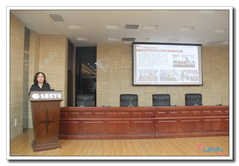 副院长刘长江、徐以中,院党委副书记庞小燕围绕各自分管工作做了汇报。刘长江号召老师们继续配合做好迎接本科教学审核评估的相关工作,同时大力推进“十三五”本科专业建设尤其是2016年方案评估工作;徐以中汇报了学院科研以及学科评估相关情况,希望老师们积极参与科研团队学术活动,同时推动研究生公共外语教改工作;庞小燕详细介绍了“外语人才素质能力提升工程”、“模拟联合国”、“贤外之音”沙龙活动的实施过程,呼吁老师们加入指导团队支持工作开展。