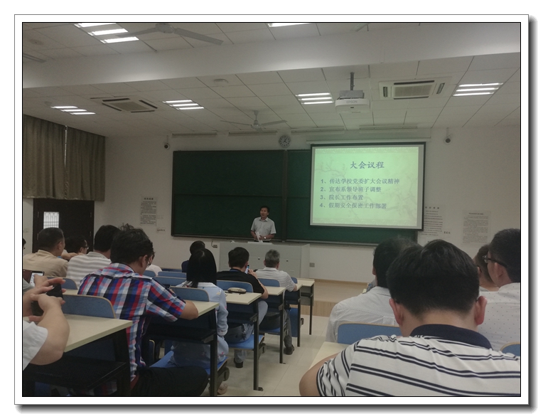 院长傅玉灿介绍了系领导班子换届情况,并宣布了新一届各系领导班子成员名单。他首先对各系上一届领导班子所作出的辛勤努力及取得的卓越成果表达衷心感谢,并指出,“系领导班子是学院学科建设、科学研究及人才培养的核心力量,事关学院双一流创建、十三五发展的大局。”他希望新一届各系领导班子成员能够继续弘扬求真务实、勇于创新的精神,秉持着全心全意的服务理念,为全体教职工创造事业发展的新平台。