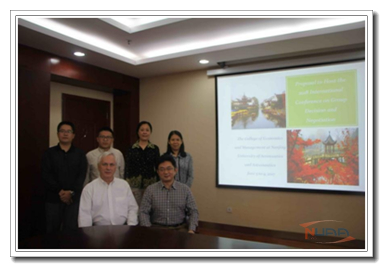 受南京航空航天大学邀请,加拿大康考迪亚大学资深教授、INFORMS期刊Group Decision and Negotiation(GDN)主编Gregory E. Kersten教授于2016年10月8日来经管学院与师生进行了学术座谈交流。参加学术交流还有经管学院副院长王英、周鹏,院长助理陈晔,智能决策与风险分析研究所所长徐海燕以及博士、硕士生代表。 ![]() 经管学院院长周德群教授致欢迎词,Kersten教授详细介绍了GDN期刊的举办理念、研究方向、以及论文投稿数量、接受率、引用等情况。双方进一步研讨了经管学院申请承办GDN2018年年会以及加强国际合作等事宜。最后Kersten教授参观了经管学院的院史馆,对经管学院在过去几十年的科研教学和人才培养工作取得的成果表示赞赏。