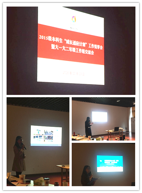 10月13日下午,我校2015级本科生“成长适应计划”工作悦享会暨大一、大二学生工作年级组会议在将军路校区学生发展中心举行。学生工作处负责同志、部分学院党委副书记出席会议,两年级本科生辅导员参加会议并交流发言。 会上每位大二年级辅导员结合过去一年学院开展“成长适应计划”工作的情况分享了一个与学生的故事,一项工作经验和启示。通过故事和工作启示生动形象的介绍了各学院学生进校以来在学习适应、人际适应、心理适应、生活适应、文化适应等方面中存在的问题,学院针对性的调查研讨、引导帮扶,以及工作成效。大一年级辅导员代表分享了一个月新生工作的感悟,并通过互动问答与大二年级辅导员进行了工作交流分享。