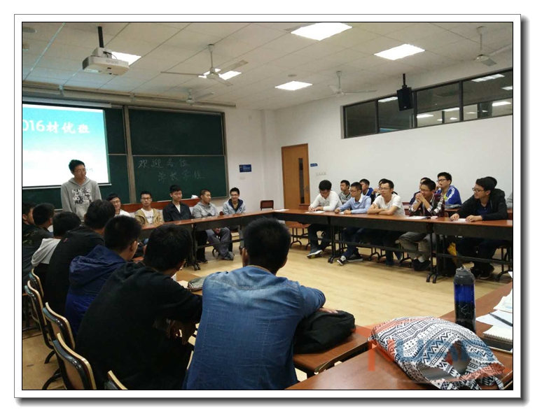 经验交流会开始,材优班的学长们分别讲述大学的学习生活,传授了他们获得的学习经验,介绍了材优班的奖学金、保研、导师配备、科创等各方面的政策;还介绍了大学不同于高中的学习方法,以及如何更好地适应大学的学习环境,并着重的介绍了工数、工图的学习方法。除了对学习方法的介绍外,还讲述了他们对于社团活动、班级活动以及学习三者之间如何平衡的看法。鉴于培优班特有的淘汰机制,学长们向2016级学弟学妹们阐述了班级建设的重要性。