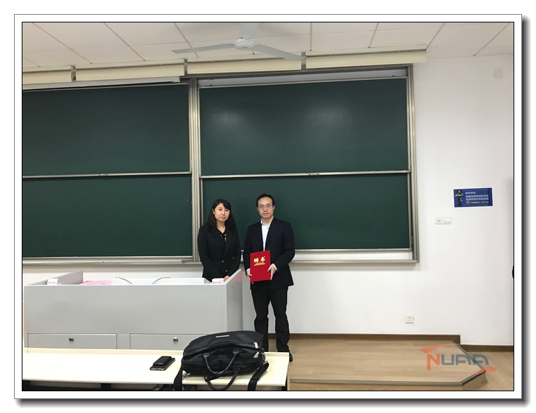 2016年10月22日下午,将军路校区D2308教室,研究生企业课程《工程检测技术及应用》的课堂,在课前,研究生院副院长刘丽琳、自动化学院院长助理杨德华、系主任李开宇向承担该课程授课的企业专家:中国科学院国家天文台南京天文光学技术研究所张勇研究员、江苏省特种设备安全监督检验研究院郑凯教授级高工、南京稻盛弘网络科技有限公司张波产业教授等3位企业专家颁授了企业课程讲席教师聘书。