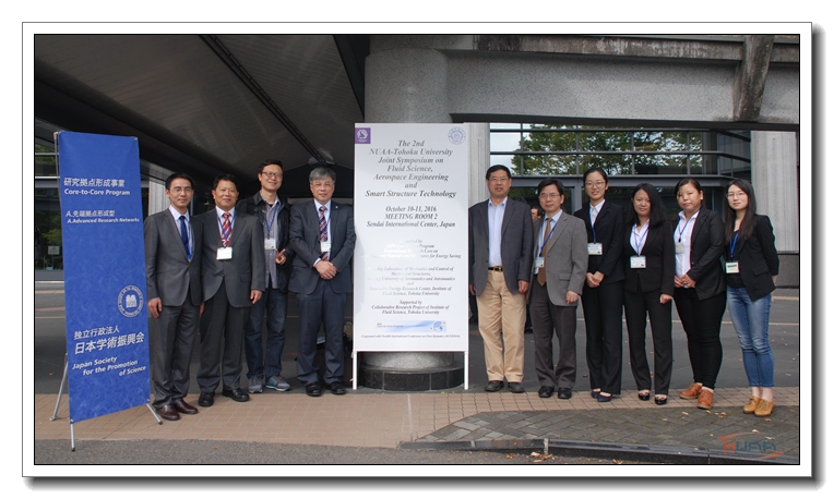 2016年10月10日至11日,第二届南航-东北大学流体科学、航空航天工程和智能结构技术研讨会(The 2nd NUAA-Tohoku University Joint Symposium on Fluid Science, Aerospace Engineering and Smart Structure Technology)在日本仙台国际会议中心成功举办。日本东北大学流体科学研究所高木敏行(Toshiyuki Takagi)教授,内一哲哉(Tetsuya Uchimoto)教授和我校机械结构力学及控制国家重点实验室熊克教授、裘进浩教授为会议的合作组织者,会议目的在于交流流体科学、航空航天工程和智能结构技术等相关领域的进展等。日本东北大学部分师生,我校师生(12人),法国ELyTMaX 的Jean-Yves Cavaillé 教授,德国Saarland University的Christian Boller教授和瑞典Royal Institute of Technology的P P. Henrik Alfredsson教授、Fredrik Lundell教授等近50人参加了研讨会。高木敏行教授和内一哲哉教授等为此次会议作了认真细致的准备,使得会议取得圆满成功。 研讨会上,熊克、裘进浩、赵宁、朱孔军、王彬和吴义鹏等6位老师分别作了邀请报告或研究报告,内容涉及采用数字图像相关技术的金属离子聚合物复合材料应变分布研究,基于激光超声方法的复合材料损伤和疲劳检测,针对复杂可压缩流动的笛卡尔网格方法及其应用,铌酸钾钠基无铅压电陶瓷的组成优化、相结构及电学性能研究,用瑞利波定量化重构半空间表面孔洞缺陷的方法,以及一种新型非线性升频式压电能量收集器。来自我校航空宇航学院和材料科学与技术学院的6位研究生同学也分别就自己的课题研究,做了口头报告,内容涉及微喷嘴扩散器的流动特性、超冷大液滴冲击特性的数值模拟、水热法制备的纳米CoO2陶瓷及其热电性能、金属离子聚合物复合材料、PVDF-TrFE-CFE基纳米复合材料的巨电极效应等。报告引起了多名专家学者的浓厚兴趣,并进行了深入交流和讨论。通过此次会议,促进了我校与国际同行的交流,尤其促进了与日本东北大学在科学研究、研究生培养等领域的深入合作。