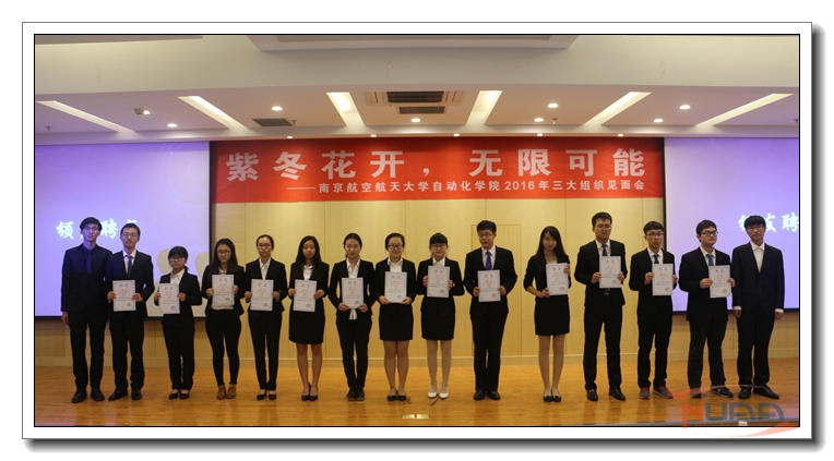 10月22日晚,自动化学院三大团学组织见面会在将军路校区自动化学院511报告厅举行。出席本次见面会的有院团委书记季娟、2014级辅导员王明月、2016级辅导员王玉珮,院团委学生会、科学技术协会和青年志愿者协会三大团学组织的上届主席团成员及本届全体成员参加了见面会。见面会以“紫冬花开,无限可能”为主题,蕴意三大团学组织充满无限可能的青春风采。 学院三大团学组织精心准备的表演精彩纷呈。开场的手影舞《夜空中最亮的星》清新唯美,院学生会学习部的《舞时舞刻》融合了舞蹈的曼妙多姿与小品的风趣诙谐,院学生会信息调研部更是别具匠心,将大家喜闻乐见的游戏搬上舞台,上演了一幕扣人心弦的短剧。院科协带来的小提琴演奏乐曲悠扬,院青协演唱的歌曲串烧《“青”你一笑》大放异彩。表演给大家留下了美好温馨的回忆。 受聘仪式环节,由院团委书记季娟和辅导员代表王玉珮为主席团成员颁发聘书,由现任三大团学组织主席团成员为各部门部长颁发聘书,这标志着院三大团学组织的新一代管理团队正式接过代代相传的火炬,为更美好的明天不懈努力。 最后,季娟老师给团学组织提出了“心怀大爱、顾全大局、注重细节、不忘初心”几个要求,并鼓励大家以往届院团学组织中优秀的学长学姐为榜样,认真学习,努力工作。 年年紫冬花盛放,岁岁团学人更新。院三大团学组织经历了近半个月的联手准备和磨合,见面会成功举办,它是学院新一届团学组织的风采展示,凝结了所有三院团学人的祝福与期盼,更开启了三院学生工作的新征程。“无限可能”的未来等着每一位学子去创造。