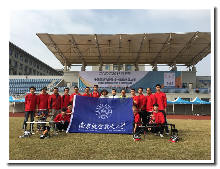 ![]() 2016年10月15—21日,中国国际飞行器设计挑战赛(CADC)在江苏省镇江市江苏省航空职业技术学院举办。南京航空航天大学代表队由领队刘双丽,教练袁伟、赵雪东和航模队同学24人组成。共参加对地侦察、模拟搜救、电动滑翔机三个竞赛项目比赛和科技创新评比。师生们沉着冷静、团结协作、努力拼搏,最终获得一等奖6项、二等奖2项、三等奖1项的优异成绩,并从百余所参赛高校中脱颖而出,获得了“优秀团队”荣誉称号。