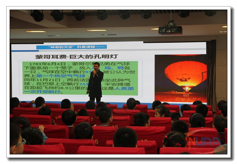 10月25日,为了进一步“宣传航空知识,弘扬航空精神”,南京航空航天大学航空宇航学院3名学生志愿者赴拉萨路小学开展航空航天知识宣讲活动。活动受到拉小师生的热烈欢迎,志愿者们帮孩子们了解航空航天知识的同时,激发了他们的“蓝天梦”。 ![]() 宣讲活动在午间进行,400人阶梯教室座无虚席,地上也坐满了学生。宣讲志愿者用主题为“中国梦,航空情”的精彩视频开场,以孩子们的视角切入,从“玩具”与现代飞行器的关联谈到飞行器的发展史与航空名人。 ![]() 精心制作的PPT,引人入胜的讲述,精彩酷炫的飞行器图片,娓娓道来的历史故事,让原本枯燥深奥的航空航天知识变得既生动又有趣。其中,中国直升机泰斗王适存先生的故事更是深深感染了学生们,引发了他们的航空热情。当志愿者问起:“你们长大了想不想成为王适存老师这样的人,投身航空,报效国家?”学生们齐声呐喊:“想!”之后,志愿者们又逐一介绍了重要的几种航空器和航天器,结合近年来中国在航空航天领域取得的一桩桩重大成就,极大地激发了孩子们对祖国航空航天事业的兴趣与热情,纷纷举手就自己感兴趣的问题与志愿者们互动交流。 活动结束后,拉萨路小学方面活动负责人韩老师对本次活动给予了高度评价。他说:“你们带来的宣讲实在是让我们太惊喜了,欢迎你们以后常来!” |
