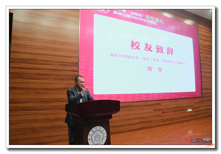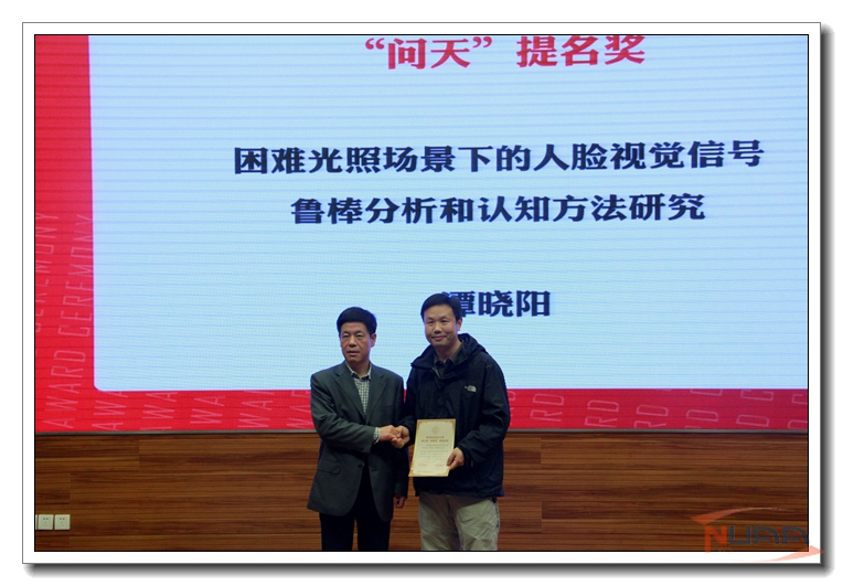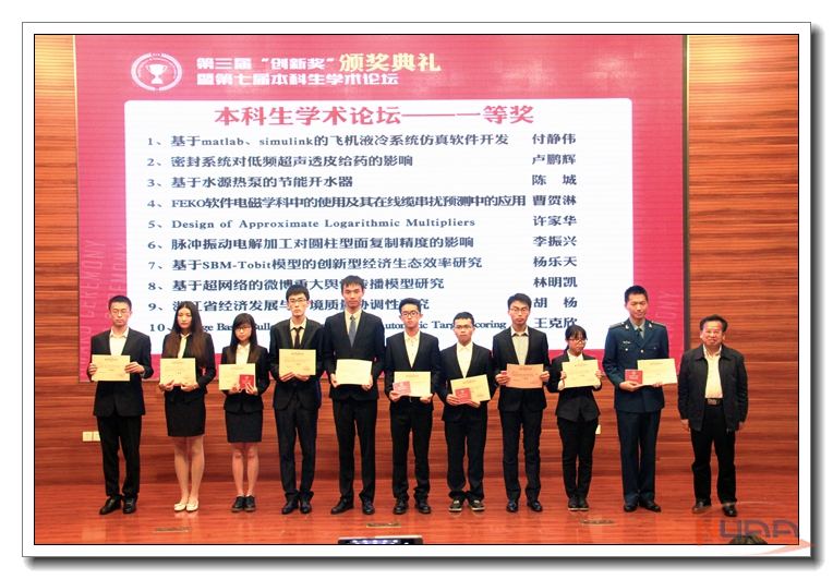 10月26日,我校第三届“创新奖”暨第七届本科生学术论坛颁奖典礼在将军路校区举行。我校党委副书记、副校长陈夏初,我校1980级校友、佳辰(香港)投资管理股份有限公司董事长蔡奎先生,我校1977级校友、成都飞机设计研究所前党委书记戴亚隆先生,教务处、科技部、高级人才办、学生处、发展联络部、将军路校区管委会、研工部、团委等部门主要负责人,各学院党委副书记,部分学院教学院长出席了本次活动。第三届“创新奖”全体获奖者,第七届本科生学术论坛优秀论文全体获奖者,以及来自各学院的学生代表参加了此次活动 ![]() 典礼开始,校党委副书记、副校长陈夏初教授致辞。他首先对个获奖团队及个人表示祝贺,对校友蔡奎先生的到来表示欢迎,并分享了他对创新的认识感悟,表达了对南航学子“发现自我、敢走新路、久久为功”的殷切期望。 ![]() ![]() 第七届本科生学术论坛共评选出获奖论文60篇,优秀组织奖5个。其中付静伟等十名同学获得一等奖,陈鹏程等二十名同学获得二等奖,陈致钧等三十名同学获得三等奖,航空宇航学院、自动化学院、机电学院、民航学院、经济与管理学院获得第七届本科生学术论坛优秀组织奖。航空宇航学院学生陈致均、经济与管理学院学生杨乐天代表全体本科生学术论坛获奖者发言。 ![]() ![]() 第三届“创新奖”共评选出27个获奖项目,其中“问天”创新奖1项,“问天”创新提名奖1项,“青年学者”创新奖3项,“群星”创新大奖2项,“群星”创新奖10项,“群星”创新提名奖10项。能源与动力学院徐惊雷团队摘得15万元“问天”创新奖;计算机科学与技术学院谭晓阳团队摘得5万元“问天”创新提名奖;赵万忠、杨浩、张道强团队分别摘得2万元“青年学者”创新奖;徐坤、王梅同学获得“群星”创新大奖,各得奖金5万元;颜文彧等10个团队获得“群星”创新奖,各得奖金3万元;李文龙等10个团队获得“群星”创新提名奖,各得奖金0.5万元。蔡奎、陈夏初分别为“问天”创新奖、“问天”创新提名奖获奖者颁奖。徐惊雷、谭晓阳、杨浩、徐坤、刘鹏程、徐伟证分别作为各自奖项获奖者代表 ![]() ![]() ![]() 最后,我校1980级校友、佳辰(香港)投资管理股份有限公司董事长蔡奎先生致辞。他先是对全体的获奖师生表示祝贺,之后结合自身实际经历畅谈了对创新的理解,并祝愿南航的学子们在创新的道路上百尺竿头更进一步。 ![]()