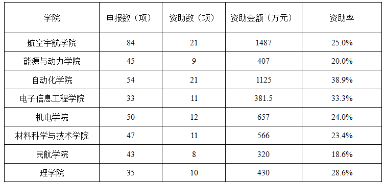 表2. 我校各学院2016年国家自然科学基金申报资助情况