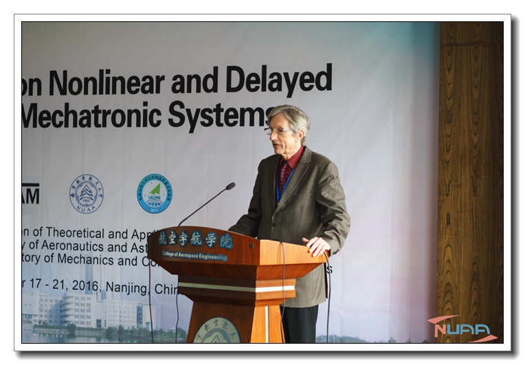 2016年10月17-21日,国际理论与应用力学联合会-机电系统非线性及时滞动力学专题研讨会(IUTAM Symposium on Nonlinear and Delayed Dynamics of Mechatronic Systems)在南京航空航天大学明故宫校区举行。会议由国际理论与应用力学联合会(International Union of Theoretical and applied Mechanics,缩写IUTAM)主办,南京航空航天大学机械结构力学及控制国家重点实验室及航空宇航学院承办。来自英、美、德、意等8个国家的近百位专家学者和科研人员参加了本次会议。