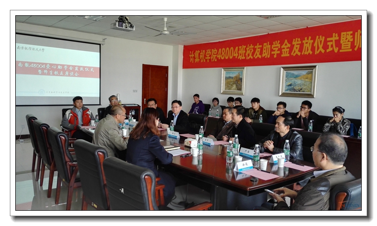 11月13日上午,我校计算机系84届48004班校友代表回到母校,为师生带来精彩讲座并发放48004班校友爱心助学金。校友北京理工大学副校长、中国科学院院士梅宏在我校“问天科学讲坛”101期精彩开讲,为师生们讲述“大数据与数据驱动的智慧”。校友上海股权托管交易中心党委书记、总经理张云峰应邀为师生作职业发展规划之“授渔圆梦”讲座。 两场精彩的讲座之后,在计算机学院楼509会议室举行48004班校友爱心助学金发放仪式暨师生校友座谈会。学院党委书记江国华代表学院对返回母校的48004班校友代表们表示欢迎,对校友们的慷慨出资表示感谢,并将学院近年来的发展情况及人才培养成果向校友们简要汇报。德讯科技股份有限公司副总经理吕军代表校友们致辞,他表示虽然已经毕业了三十多年,但还是有着深深的南航情结,时刻关注着母校的发展,也希望为学弟学妹们尽一份绵薄之力。学生方宏坚、陆要要代表上期和本期受资助学生发言,他们向校友们表示了感谢并决心以校友为榜样,不忘初心,继续努力,向着心中的理想不断奋斗。随后,师生与校友座谈交流,同学们就专业前沿技术,未来职业选择,如何处理好理想与现实的关系等问题向校友请教。校友从自身成长经历出发,为同学们答疑解惑,并对学院发展和人才培养提出建议。最后,校友们将助学金发放至学生们手中,师生与校友们一起合影留念。