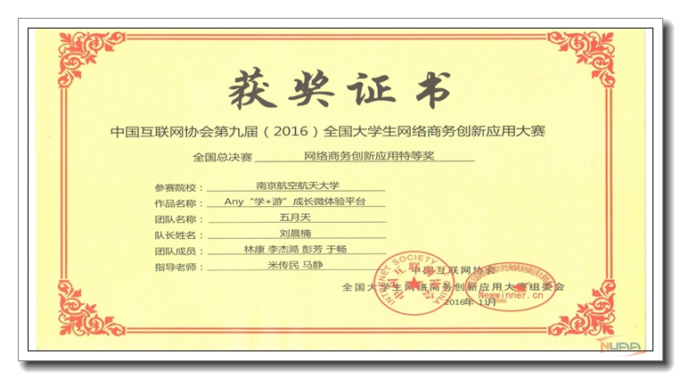 由经管学院电子商务专业刘晨楠作为队长,工业工程专业的彭芳、李杰澔,信息管理与信息系统专业的林康,文强班的于畅作为队员,组成的五月天团队荣获全国总决赛特等奖!