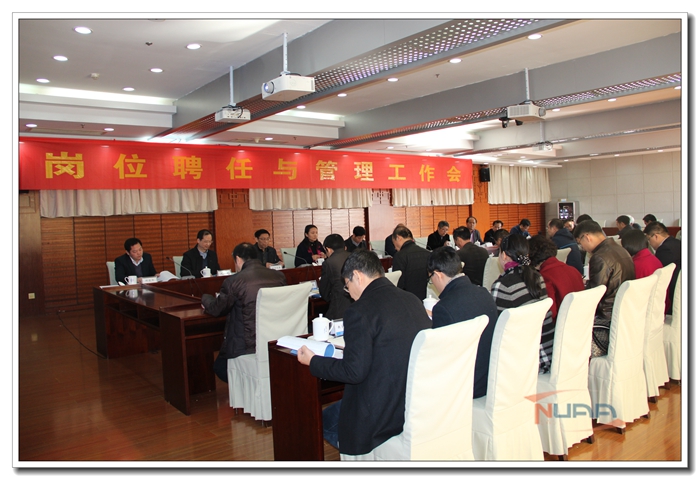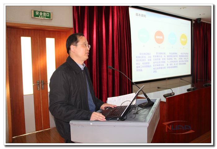2016年12月2日上午,学校召开机关岗位聘任与管理工作会。校党委书记郑永安、副校长黄志球出席了会议,机关部门主要负责同志参加了会议。会议由黄志球副校长主持。 人事处处长龚华军对《南京航空航天大学岗位聘任与管理指导意见(征求意见稿)》进行了详细说明,各单位对《征求意见稿》提出了意见和建议,龚华军处长就大家关心和共性的问题给予了回答。人事处副处长祖丽莉对《非专任教师招聘管理办法(讨论稿)》进行了详细说明。 郑永安书记作重要讲话,郑书记首先对学校优化增量改革表示了充分肯定,其效果已经在今年的人才工作中得到了充分的体现,人才工作成绩的取得离不开学校机关相关职能部门的努力。郑书记随后从三个方面对本次岗位聘任工作作出指示,第一要高度重视、精心组织。希望各部处要充分重视本轮岗位聘任工作,充分发挥主体作用,根据单位实际制定科学完善的岗位聘任办法和绩效分配办法,做到奖勤罚懒、优绩优酬。第二要统筹协调,形成合力。各机关职能部门要发挥表率作用,根据分工不同,由人事处牵头,机关党委和其他职能部门一起做好岗位聘任工作,将此次岗位聘任和分配制度改革落到实处。最后要转变观念、勇于担当。现在改革已进入深水区,希望各部处主要负责人要坚持正确的方向,转变观念、勇于担当,立足当前、放眼长远,为学校未来的发展作出贡献。 最后,黄志球副校长对各部处提出的建议表示感谢,同时希望各部处负责人能够以此次岗位聘任为契机,以求真务实的态度、真抓实干的作风、争创一流的勇气,建设一支适应建设高水平研究型大学需要的机关管理队伍,全面完成此次岗位聘任工作任务。