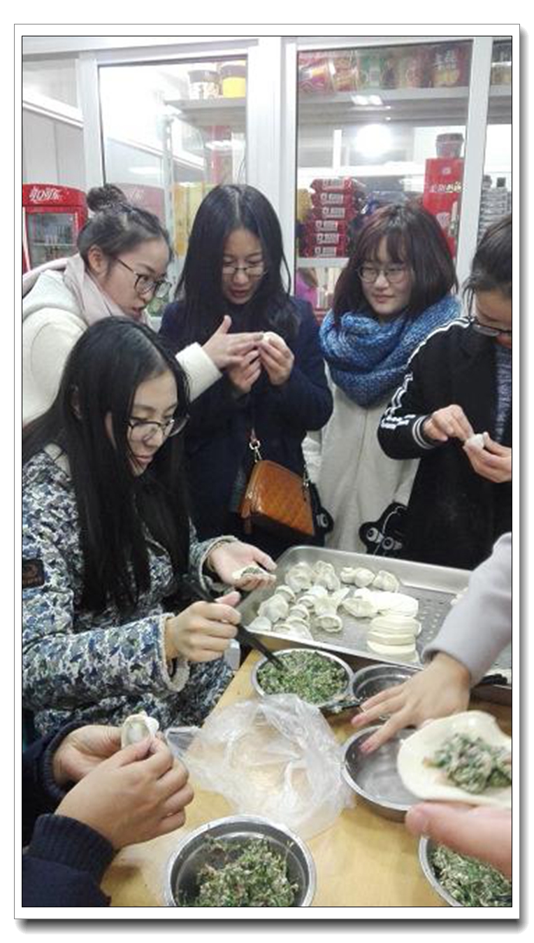2016年12月17日,为丰富广大研究生的校园生活,增进同学之间的友谊,南航经管研究生会生活部举办了一次主题为“冬至到,吃水饺——舌尖上的南航,让冬日暖起来~”的包饺子活动。参加这次活动的主要是经管学院研究生和外国留学生们,这些心灵手巧的朋友为大家带来了一次别开生面的包饺子视觉盛宴。 ![]() ![]()
