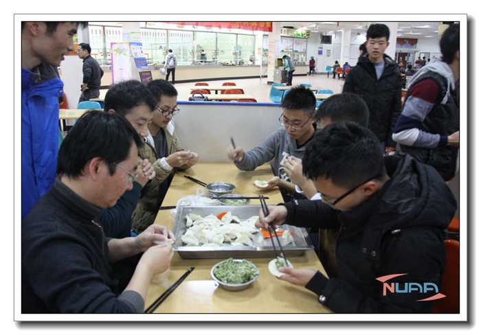2016年12月21日,航天学院“巡天揽梦·撷云以航”迎新年师生联欢活动圆满举办,航天学院领导班子、本科生导师、一年级新生等共两百余名师生共同度过了这一欢聚时刻。 活动的上半场是包饺子大赛。比赛中,工程系、控制系、信息系、空间系、仿生所、小卫星中心及学院机关共七只队伍参加了比赛。每只参赛队伍均准备了精彩的队名和比赛口号,大家各显神通,在包饺子的速度和质量上进行比拼。比赛结束后,到场师生品尝着自己的成果,别有滋味。还有师生在饺子馅中添加了葡萄干、糖果等蕴含美好意义的食材,给美食的品尝又增添了许多乐趣。