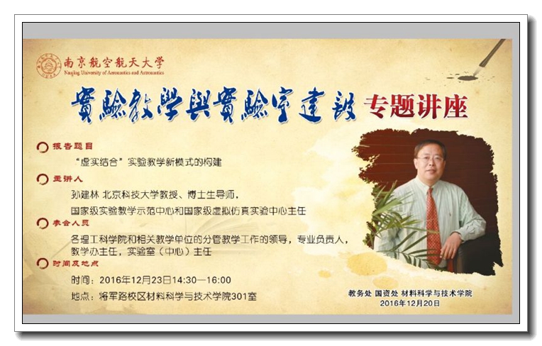 12月23日下午,由我校教务处、国有资产管理处联合举办,材料科学与技术学院承办的“实验教学与实验室建设专题报告会”在将军路校区材料学院楼举行。北京科技大学国家级材料实验教学示范中心和国家级材料虚拟仿真实验中心主任孙建林教授为我校理工科学院教学院长、系主任、专业负责人、实验室主任作了题为《“虚实结合”实验教学新模式的构建》的报告,奉献了一场实验教学与实验室建设改革发展的豪华大餐,受到与会人员的热烈欢迎和积极响应。教务处副处长江爱华主持了本次专题报告会。 ![]() 孙建林教授从北京科技大学材料实验教学中心的发展历程开始,重点介绍了材料虚拟仿真实验教学中心的起步和建设进程。他从虚拟仿真中心建设目的、虚拟仿真实验特点、虚拟仿真实验案例以及虚拟仿真实验中心运行管理等四个方面图文并茂、生动形象地阐述了虚拟仿真实验教学中心建设的内涵及在人才培养中发挥的作用。他还结合长期从事实验教学管理工作,以及作为国家级实验教学示范中心、国家级虚拟仿真中心主任的管理经历,深度分享了““虚实结合”与“共享开放”实验教学新模式:创新虚拟仿真实验中心建设内容,充分考虑融合共享;举办学科专业实验竞赛,关注共享实验教学成果;推行实验技术水平认证,促进实验资源开放;研发标准试样,虚实结合提升实验教学水平;建立材料虚拟仿真实验共享平台,以共享促开放;构建“虚实结合”实验教学模式,培养大学生创新能力,推广优质教学资源。 ![]() 江爱华在总结中指出,十二月初教育部本科教学审核评估专家组在意见反馈中指出我校本科实验教学和实验室建设中还存在不少亟待解决的问题,此时孙建林教授的精彩报告无疑是给我们雪中送炭和传经送宝,给我们很多的启示和启发。孙教授虽然用貌似平淡的语言描述了虚拟仿真实验教学中心从无到有到强的发展历程,但其中是先进教育教学理念的融入,是精益求精管理水平的呈现,是科研成果转化为教学资源的实例,在人才培养过程中发挥了重要作用。他最后指出,十三五期间我校将大力加强实验教学条件建设,基础实验设备更新、实验教师队伍完善、实验管理水平提升等三方面是重中之重、也是我校本科教学建设的重点任务,本次报告会为我们提供了值得借鉴的宝贵经验。 ![]() |