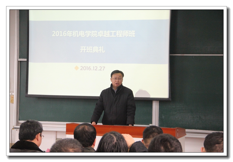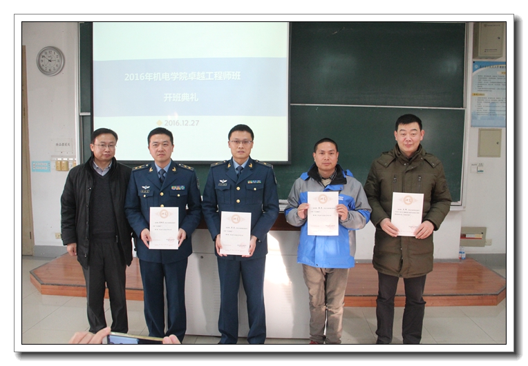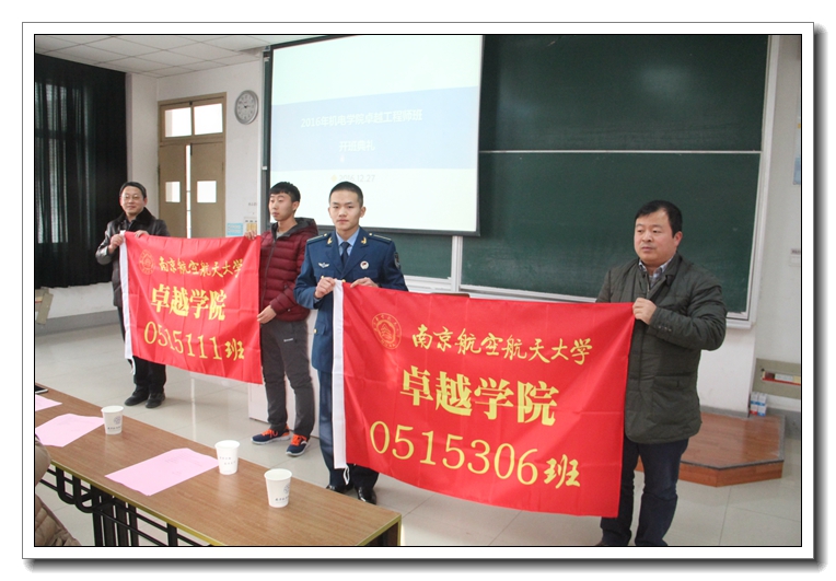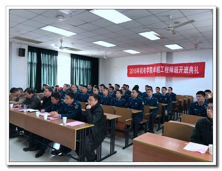 2016年12月27日下午,机电学院2015级卓越计划开班典礼在将军路校区6103成功召开。本次典礼由机电学院副院长郭宇教授主持,到会的有教务处实践与培养科王尚北老师、阿特拉斯高级工程师秦虎、空军选培办李吉干事、空军机务工部蒋相闻博士、校内导师王辉老师、机械制造及自动化系副主任孙玉利老师、航空宇航制造工程系副主任鲍益东老师、机电学院教学秘书黄念一老师、2015级卓越班辅导员顾悦和奚小茜老师,以及2015级机电学院卓越班全体学生。 ![]()