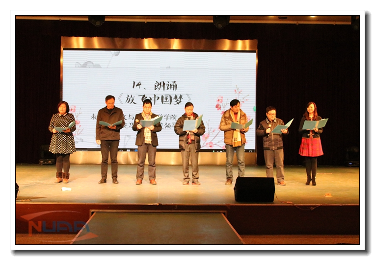 神猴辞岁,金凤迎春。2016年12月28日晚,由人文学院、马克思主义学院联合举办的“壹路壹起,共你写意”师生联欢晚会在将军路校区大学生活动中心举行。两院全体院领导和众多老师、同学出席了本次晚会。 晚会分“共你有过最美的邂逅”、“ 一路上有你便觉写意”、“結伴创将来多么的美”三个篇章进行,整场晚会是一道丰盛的视觉大餐。动感十足而不失优雅的开场舞拉开晚会的序幕,学生的一曲古琴弹奏随着伴舞、书法映衬着此番“良辰美景”;活泼俏皮的研究生学姐们的《三句半》迎来阵阵掌声;男神老师们深情演唱的《老爸》、《为了谁》更是掀起一阵阵高潮;相声《踹一踹》、小品《空姐培训》使全场捧腹大笑;两院七位领导带来诗朗诵《放飞中国梦》,激情澎湃,催人向上,引发台下同学的共鸣;最后由两院机关老师的合唱《明天会更好》为晚会画上圆满的句号,会场充满了欢声笑语。 师生联欢活动增进了师生情谊,提升了学院凝聚力和向心力。精彩的时光总是短暂的,但师生同欢的场景却经久不散, 2017就要来临,就让我们一路一起,共同写意。 ![]() ![]() ![]() |