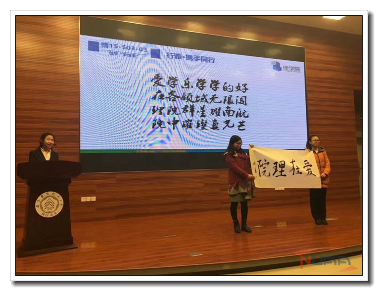 12月27日下午,理学院“立志•拼搏•同行”总结表彰大会暨学生素质能力培养成果悦享会于在一号楼四楼报告厅召开。理学院党委书记余春玲、院长施大宁、教务处副处长阎志军、副院长王春武、王正盛、刘友文、学院系主任、“1+4”本科生导师代表、班主任代表、辅导员以及13、14、15级学生参加了本次表彰,大会由理学院党委副书记王静和团委书记王亚鹏主持。