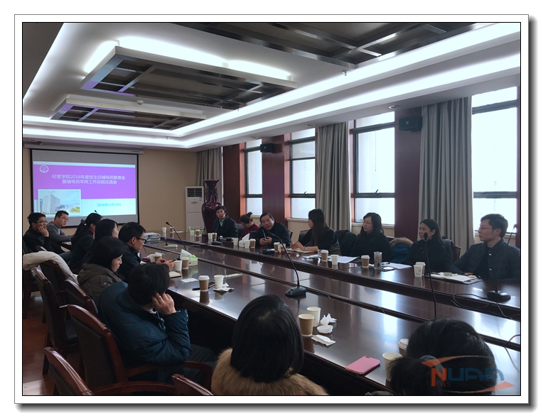 12月29日,经管学院在将军路校区经管楼604会议室召开2016度班主任辅导员联席会暨辅导员年终工作总结交流会,经管学院党委书记焦宏图,副院长张卓、王英、党委副书记许静,系主任代表、班主任代表和全体辅导员参与了本次交流会,会议由党委副书记许静主持。本次会议旨在加强辅导员和班主任之间的沟通交流,共同探讨教学管理上发现的问题,及时解决学生学习生活上遇到的各种困难。
