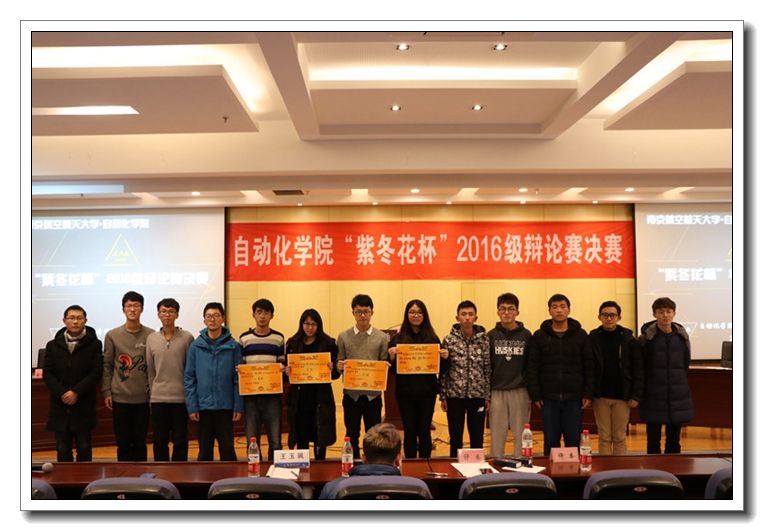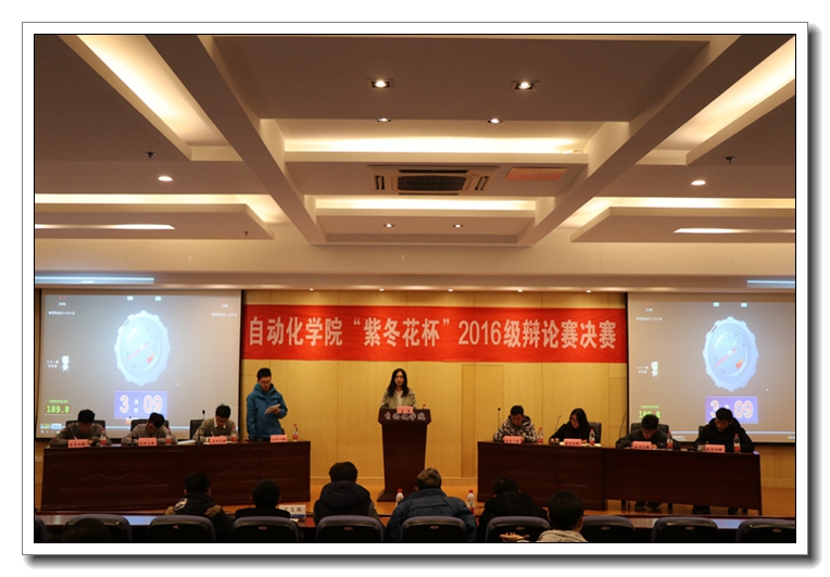 自动化学院2016级“紫冬花杯”辩论赛决赛于12月30日在自动化学院1号楼511报告厅正式落下帷幕,决赛邀请了辅导员王玉珮老师与校辩论队资深辩手担任评委。最终0316502班技高一筹,成为自动化学院2016级辩论赛冠军。