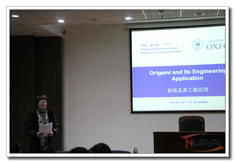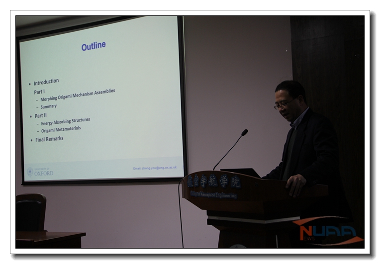 应我校机械结构力学及控制国家重点实验室高存法教授邀请,英国牛津大学Zhong You教授来我校进行访问,并分别于2016年12月21日、2017年1月9日为我校师生做了题为“Deployable and Origami Structures”和“Origami and its Engineering Applications”的学术报告。报告分别介绍了折纸结构和它们的工程应用等国际前沿问题。报告结束后Zhong You教授与在场的师生就相关领域的研究进行了交流和讨论。师生们认真聆听,踊跃提问,受益匪浅。 ![]() ![]() 访问期间,Zhong You教授在高存法教授的陪同下参观了机械结构力学及控制国家重点实验室,与周丽教授、沈星教授等就双方共同关注的折纸结构及其力学问题进行了探讨,就人员交流、研究生联合培养和开展进一步的科研合作等问题与有关人员进行了交流,达成了初步合作意向。此次交流访问对于增强我校与英国牛津大学之间开展学术交流以及合作研究将起到积极的促进作用。 ![]() ![]() Zhong You教授,英国剑桥大学博士,牛津大学终身教授。他是国际上从事可动/可展结构研究的专家之一,其主要学术论文被国际知名杂志Nature和 Science等收录,也曾接受过Science杂志的专访。曾获得包括英国皇家工程院和英国土木工程师协会的奖励。其研究成果获英国金融时报(Financial Times)特别报道,并被选入2006年代表英国最高水平的皇家协会在白金汉宫的科学日展览。Zhong You教授兼任Journal of Mechanical Engineering Science (IMechE Proceedings Part C)编委,新加坡南洋理工大学Tan Chin Tuan visiting fellow,英国工程和物理科学研究基金会评审团成员等。 |