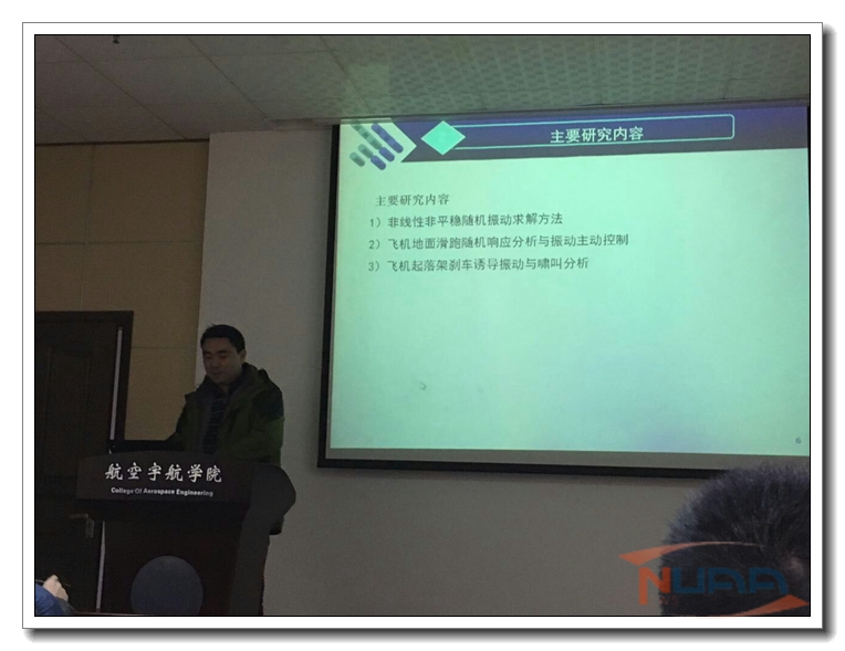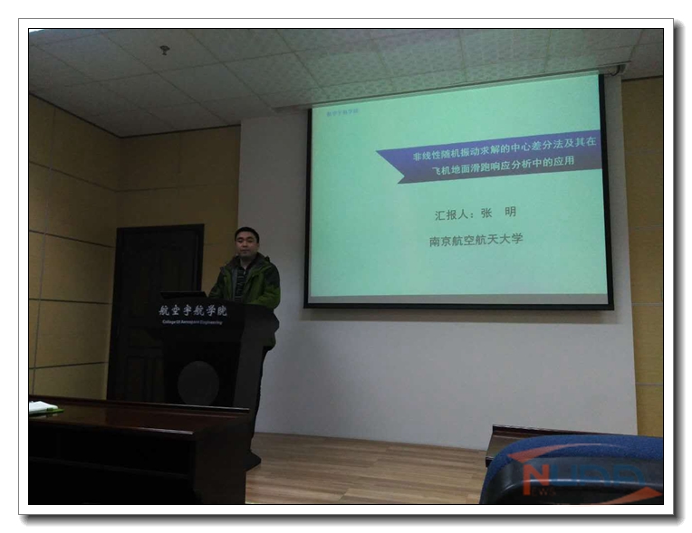 按照校人事处关于公派留学回国教师的要求,航空宇航学院飞行器系张明副教授于2017年1月9日为我校师生作了题为“非线性随机振动求解的随机中心差分法及其在飞机地面滑跑响应分析中的应用 ”的学术报告。报告介绍了其在美国留学期间所开展的非线性随机振动及飞机地面滑跑响应分析的系列研究工作。 张明副教授作为国家公派高级研究学者及访问学者,于2014年12月至2015年12月期间访问美国内布拉斯加州立大学-林肯校区,师从于该校机械与材料系终身教授C.W.S.To教授,他是ASME会员,I. Diag. E创始会员,大连理工大学海天学者,北京航空航天大学客座教授。研究方向包括非线性随机振动、非线性有限元方法、系统动力学与控制等,发表论文近百篇,近五年出版非线性随机振动相关专著五部。 张明副教授在美期间主要工作为针对结构随机振动问题,建立了非线性非平稳随机振动的中心差分法求解格式,并将之应用于飞机地面变速滑跑随机响应分析,为飞机减振设计及疲劳载荷谱编制奠定了基础。此次访问对我校航空宇航科学与技术学科在飞机减振问题研究方面的发展具有一定的促进作用。 张明,博士,副教授。主要研究方向包括:飞行器起落装置设计、飞行器系统动力学等。第一作者发表论文十余篇,参与编写论著1部,授权专利多项。主持国家自然科学基金、军口863计划、教育部博士学科点基金、航空科学基金及国家重点型号工程转横向合作项目多项。 ![]() ![]() ![]() (叶陈晖) |