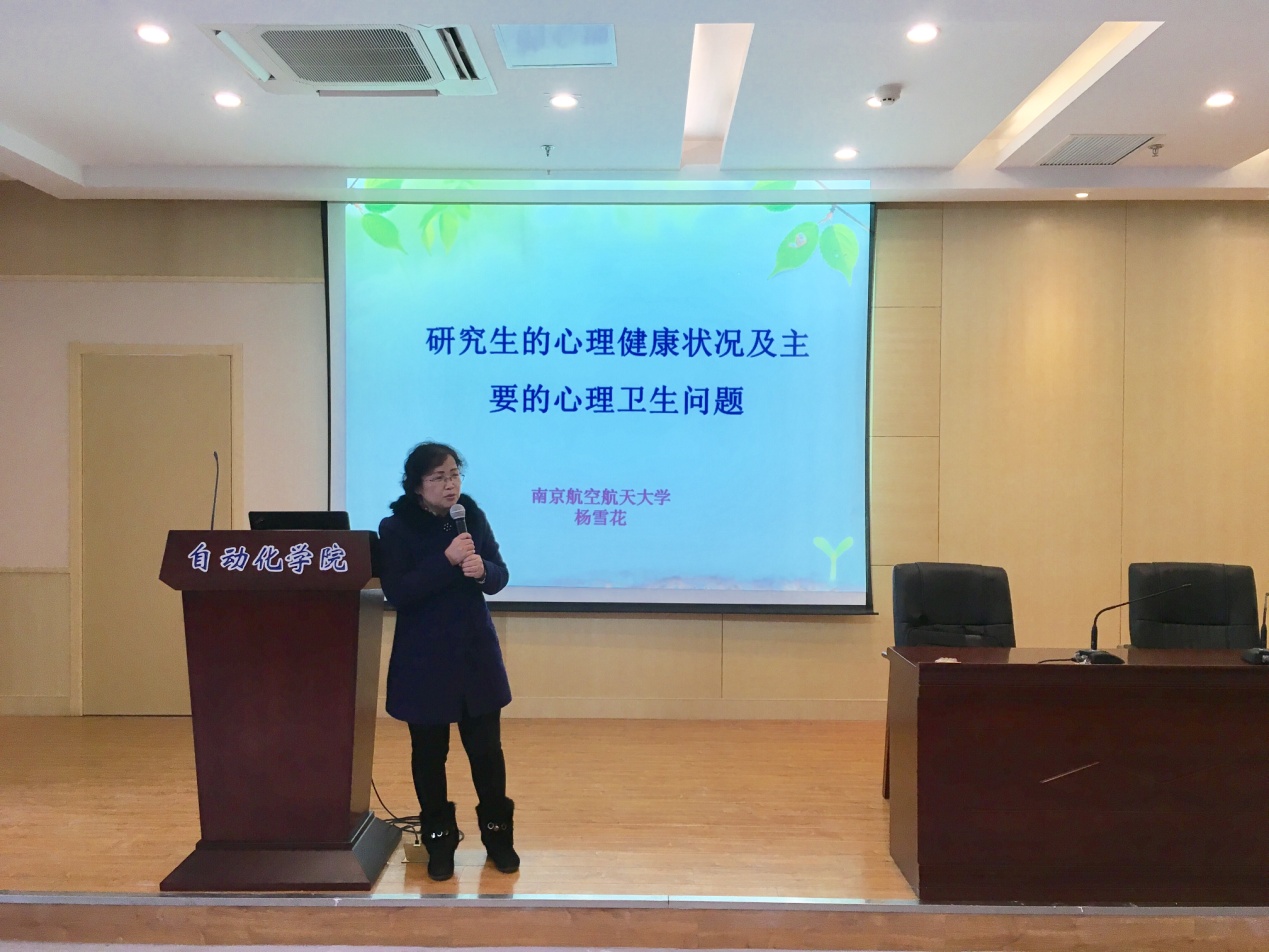 2017年2月28日下午,自动化学院在学院1号楼511报告厅举办了题为“研究生心理健康”的导师培训,主讲嘉宾为南航心理健康教育中心杨雪花老师。学院党委书记刘建成、院长姜斌、党委副书记沈伯秀、副院长王晓琳、学院全体研究生导师及全体辅导员参加了本次培训。