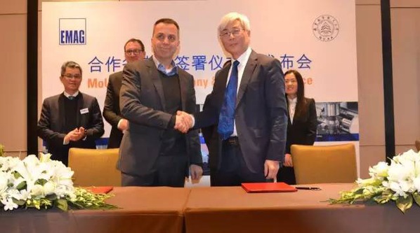 埃马克(中国)机械有限公司CEODr.UweRonde(左)与南京航空航天大学何宁教授(右)签署合作备忘录