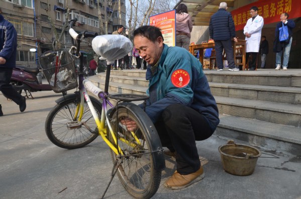 后勤集团党委全体服务人员积极参与到现场活动中,迸发出极大的服务热情。校医院党支部特地把电子血压测量器运送至现场为社区居民提供服务,提供了包括测量血压,公费医疗咨询等内容的义诊活动。水电与维修服务中心党支部提供义务上门维修服务,及时的为一些高龄老人解决相关困难。物业管理中心党支部义务维修自行车10辆,师傅认真细致的工作态度受到赞扬。校园服务中心党支部提供电话义务维修服务,上门帮退休老教工排查电话问题。车辆运输中心党支部在修理厂提供车辆义务检测服务。公寓服务中心党支部专门把钥匙配制机带到现场,共为前来的居民们免费配钥匙30把。饮食服务中心为学雷锋活动特别购进一批质优价廉的干货,并以成本价的方式在西苑贩售,方便西苑住户,“三块八毛一斤的鸡蛋,这可比超市便宜多了,南航后勤的活动真实惠!”一位南航老教工奶奶夸赞道。
