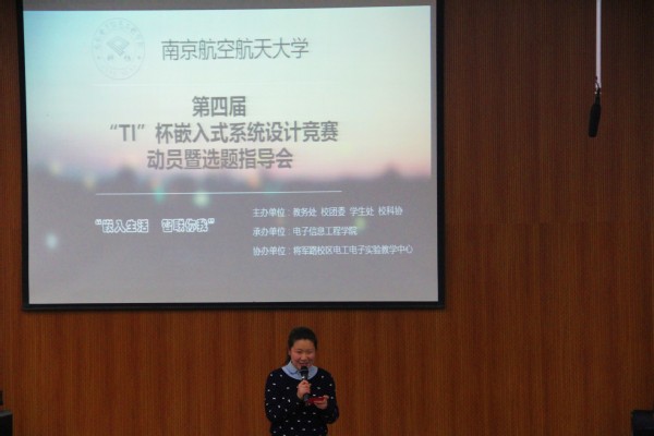 3月3日,由教务处、校团委、学生处、校科协主办,电子信息工程学院承办的第四届TI杯嵌入式系统设计竞赛动员暨选题指导会在2110教室成功举行。竞赛专家组成员、电工电子实验中心魏小龙老师及竞赛工作组成员代表出息了本次活动。竞赛由德州仪器公司赞助,以嵌入式系统设计为主,学生利用课余时间,在规定时间内完作品制作、调试以及设计报告,每两年举行一次。