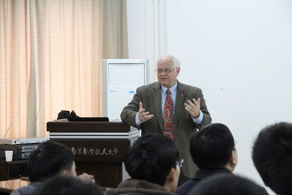 会谈之后,Bourell教授为材料学院百余名师生作了题为“材料及增材制造”的报告,全面阐述了近年来国际上在聚合物、金属、合金、陶瓷及复合材料增材制造领域所取得的研究进展,指明了增材制造专用材料设计、制备及成形研究领域未来的发展方向。Bourell教授的报告体现了增材制造3D打印领域当前的学术研究前沿,内容丰富,学术性强,与会师生纷纷表示报告精彩、受益匪浅。西门子中国、江苏省增材制造(3D打印)产品质量监督检验中心的同仁专门从上海、无锡等地赶来南航聆听报告,一睹大师风采。