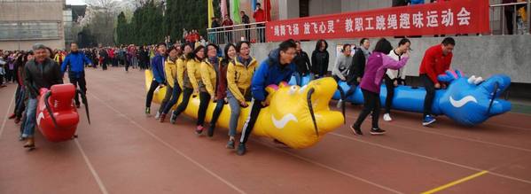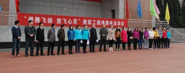 3月16日下午,我校第四届“绳舞飞扬,放飞心灵”教职工跳绳趣味运动会举行。校长助理陶勇宣布运动会正式开始。