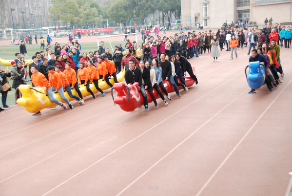 雷霆战鼓、旱地龙舟是今年第一次尝试的团体运动项目。雷霆战鼓每队4名队员分别持雷霆鼓的四个把手,雷霆鼓上放置一个活力球,裁判发令后,4名队员通过协作使活力球跳动起来,队员一起协作向终点行进。旱地龙舟每队8名队员跨坐在龙舟上并通过协调配合使龙舟在跑道上行进。赛场上矫健的身姿和坚强的意志充分展现了我校教职工团结拼搏、奋发向上的精神风貌。