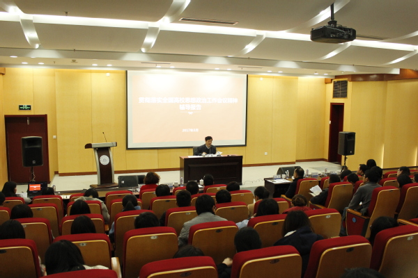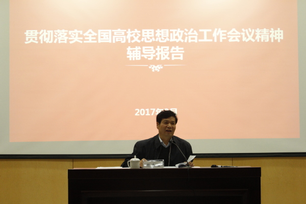 3月17日下午,校党委书记郑永安深入学生工作队伍,面向学校学生工作部门、全体学生工作人员作了贯彻落实全国高校思想政治工作会议精神辅导报告。校长助理陶勇主持会议。党政办、组织部、宣传部、学工部、研工部、团委负责同志参加会议。