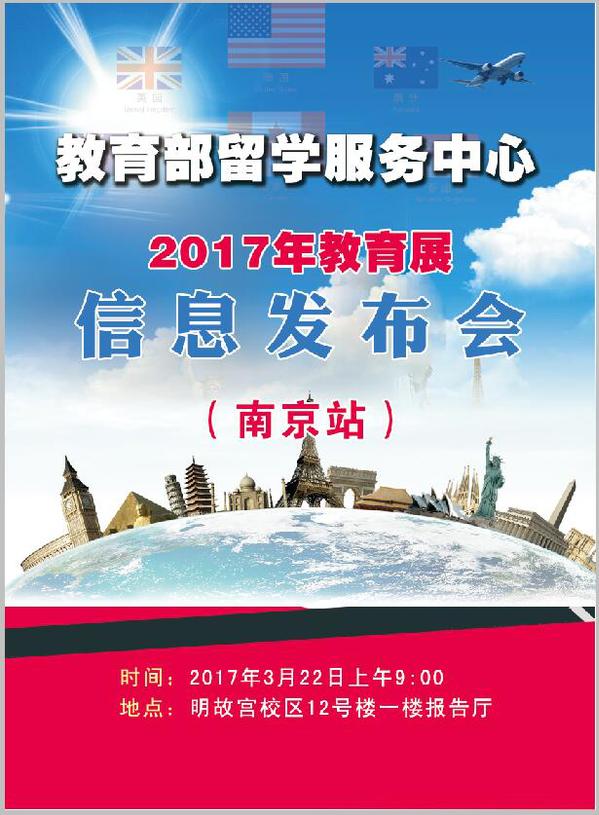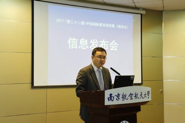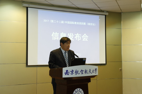由教育部留学服务中心国际合作处举办的“2017(第二十二届)中国国际教育巡回展(南京站)信息发布会”于3月22日上午在我校明故宫校区12号楼报告厅举行。