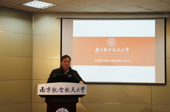 聂东林首先向大家的到来表示欢迎,接着介绍了我校在教育部留学服务中心帮助指导下开展的CSCSESQA-HND(3+1)项目的特点以及在招生、教学管理、 人才培养、留学服务等方面所做的各项工作。田一聚介绍了江苏教育国际交流与服务有关情况。