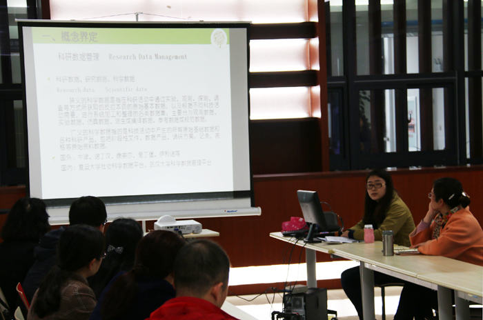 4月7日下午,图书馆馆员素质提升主题沙龙在将军路馆读者活动中心正式开讲,首期主讲人为图书馆信息技术部副主任李曈老师,主题为“高校科研数据管理”,图书馆相关馆员、图书馆情报学硕士点研究生参加主题沙龙。