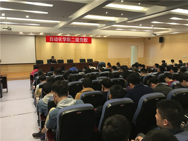 4月5日下午,自动化学院二级党校在学院1号楼511报告厅举行。此次党课由学院组织员张松祥主讲,学院党委副书记沈伯秀主持,自动化学院全体辅导员、本科生党员、研究生党员骨干及本学期拟发展对象参加了党课。