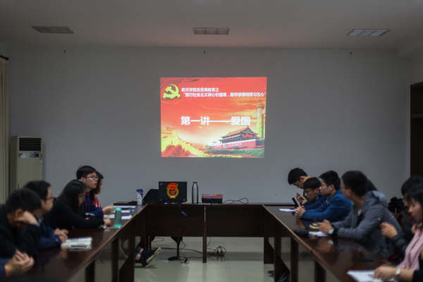 4月6日晚,航天学院召开了学生党员再教育之社会主义核心价值观主题论坛第一期,论坛主题为“爱国”。航天学院辅导员范伟担任主持嘉宾,学院全体学生党员参加论坛,论坛由罗轶欣和徐彤彤两位同学共同主持。